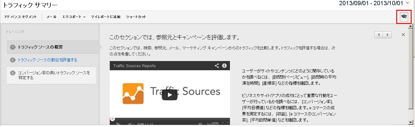 Google アナリティクスにトレーニングボタンができていた(エデュケーション機能)