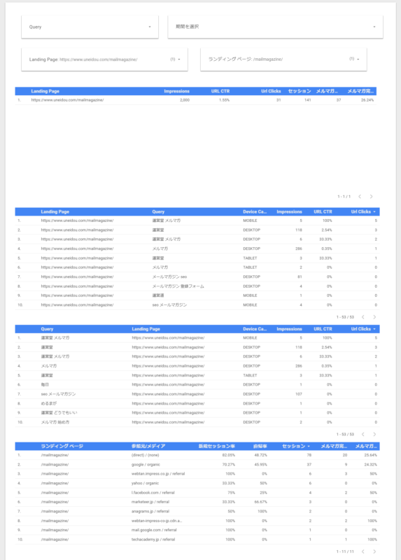 検索クエリで絞り込んだ時にランディングページが基準だとちょっと見づらいので、検索クエリを基準にしたものです。