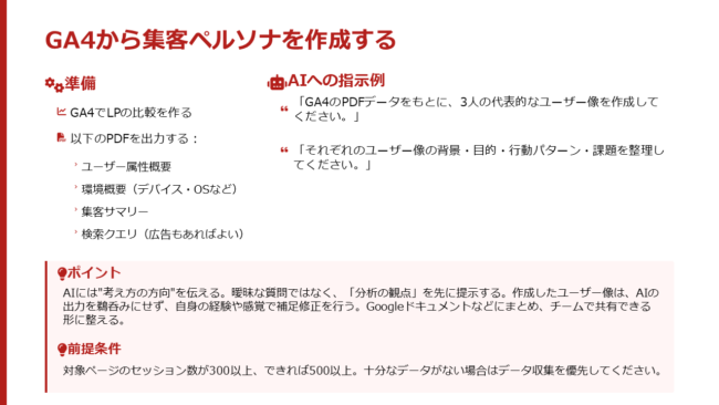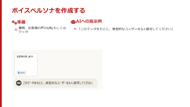 ペルソナを基準として渡す。その状態でAIと一緒にデータを見る。