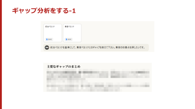 両方のペルソナのドキュメントを入れて聞くだけです。