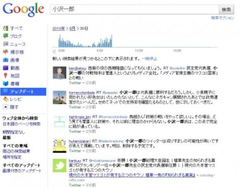 Google Japan Blog: リアルタイム検索に新しい機能が加わりました リアルタイム検索とはTwitterやGoogleバズ(まだ …